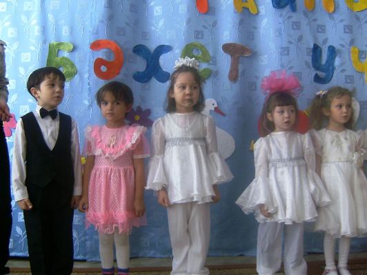 01.09.2010. “Белем көне”ндә 5 яшьлек 5 бала мәктәпнең әзерлек төркеменә күчте. 4 бала 1нче сыйныфка укырга керделәр. 26.10.2010. Көз бәйрәме -“Сөмбелә” үткәрелде. 15.11.2010. Өлкән сыйныф укучылары, балаларга, юл йөрү кагый- дәләрен үтәмәгән үрдәк баласы турында әкият күрсәттеләр. 30.10.2010. Бакчада “Хуш киләсең, Яңа ел!” кичәсе үтте. |