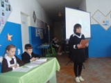 хәзер сүзне иптәшләребезгә бирик. (Театральләштерелгән күренеш.)